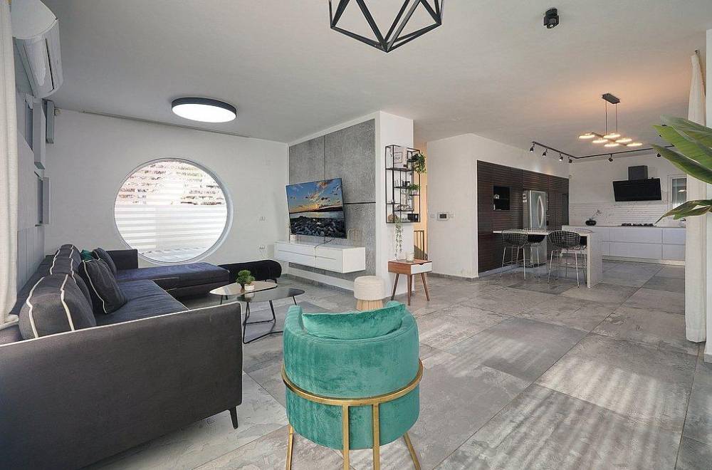 סלון מרווח עם טלוויזיה חכמה, חיבור לנטפליקס חינם ויוטיוב (באישור הזמנה) ומערכת ישיבה