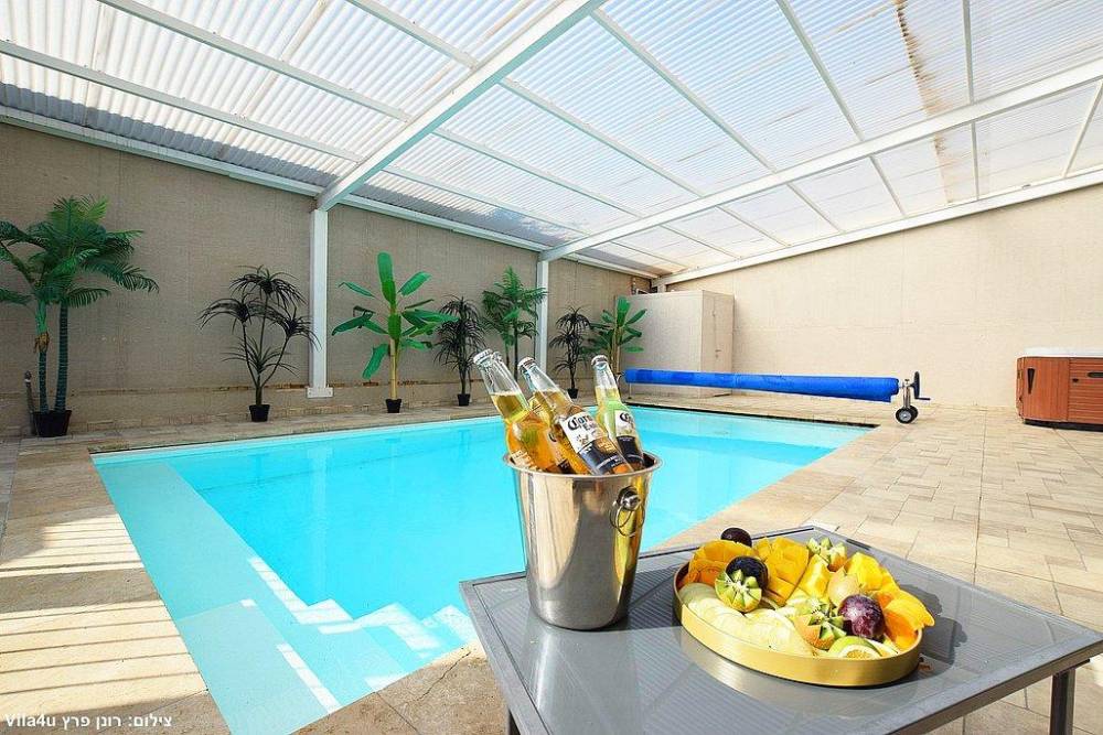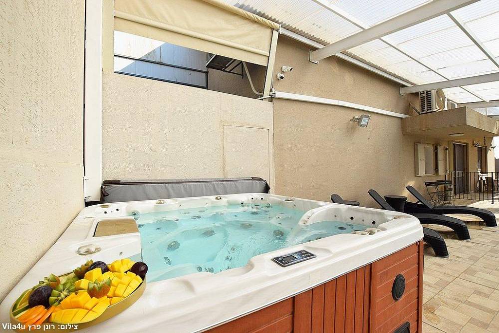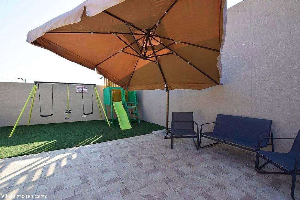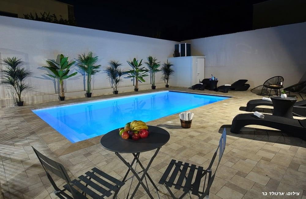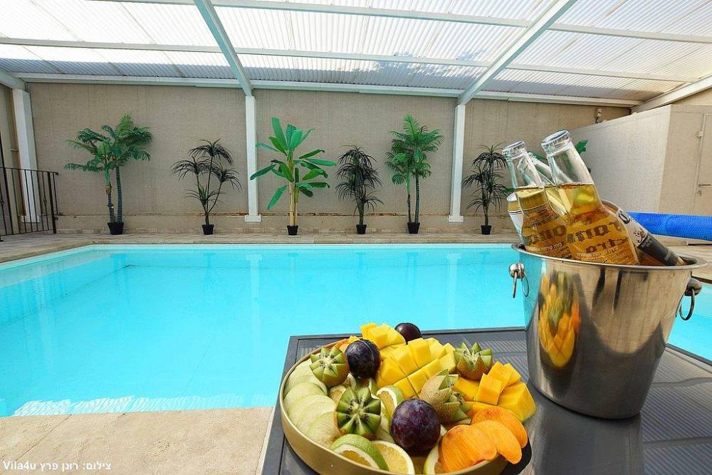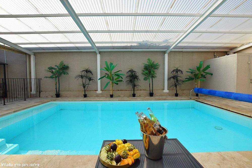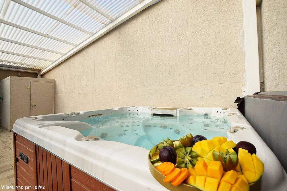 החצר? חוויה בפני עצמה: בריכה פרטית מחוממת ומקורה, ג’קוזי ספא, מיטות שיזוף, פינות ישיבה, שולחן פינג פונג, ברביקיו ומטבחון, ועוד שטח משחקים לילדים עם בית עץ, נדנדות וטרמפולינה.