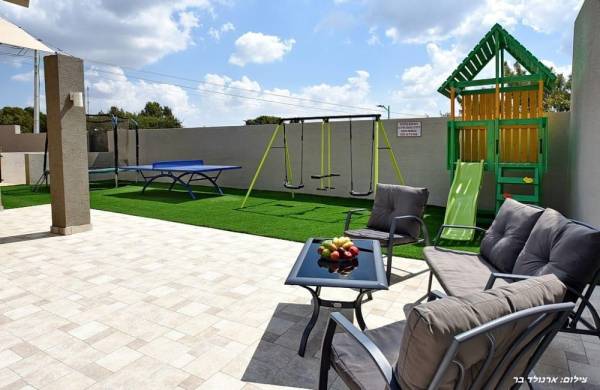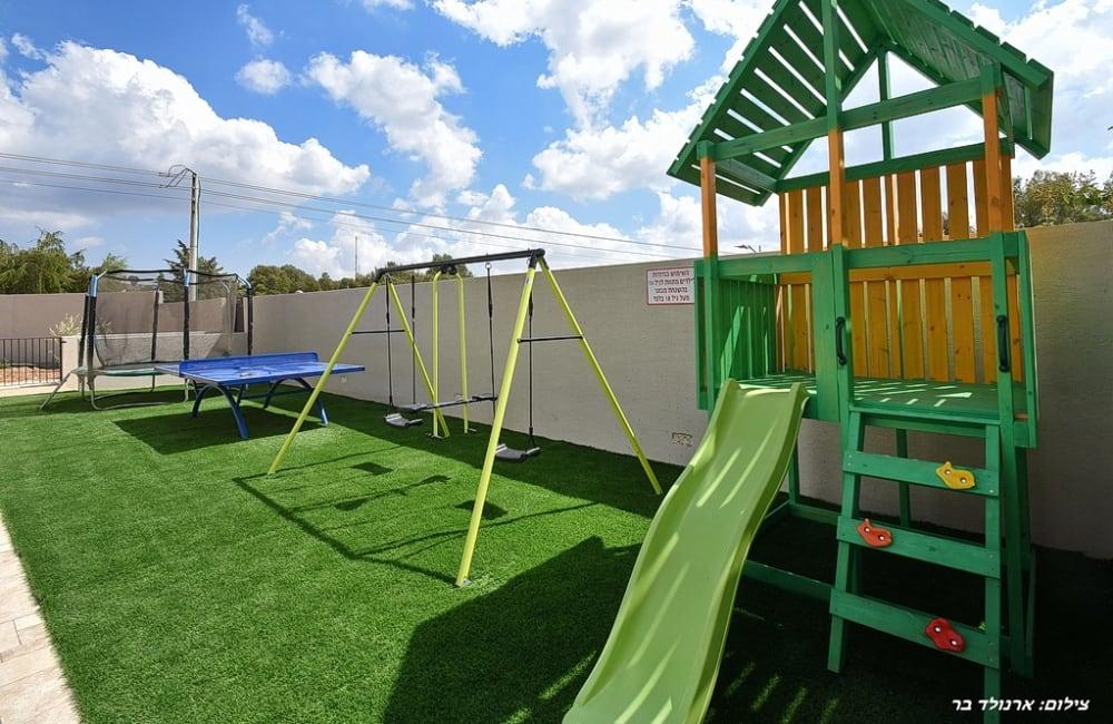 - משחקים לילדים: בית עץ, נדנדות, טרמפולינה, פינג פונג
