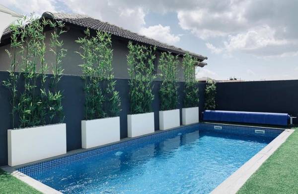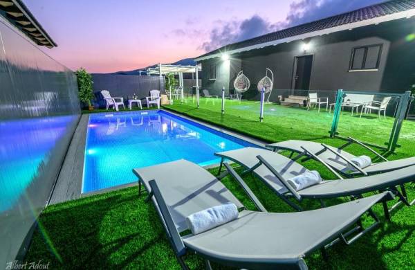 בנויה, מגודרת ומחוממת מאפשרת רחצה בכל עונות השנה, לצידה ג’קוזי ספא חיצוני גדול