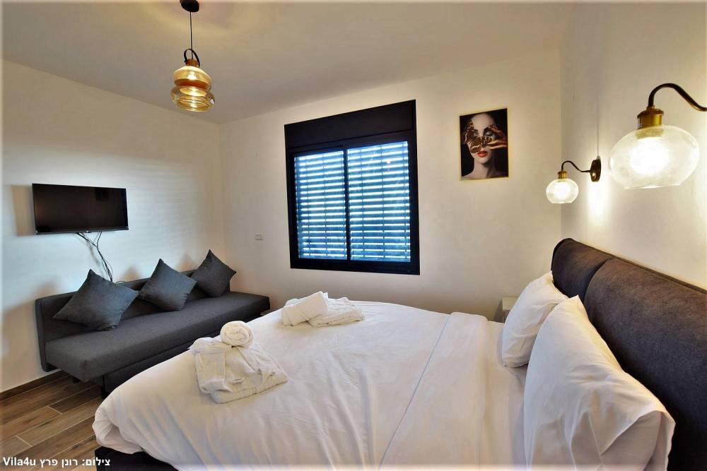 מיטה זוגית, טלוויזיה, ארון אחסון, ספה נפתחת ומיזוג אוויר. ל3 מהחדרים קיים קומת גלריה לילדים