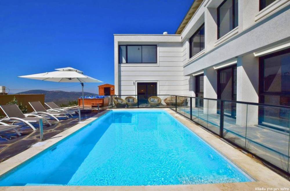 הוילה כוללת 7 חדרי שינה מרווחים, סלון מעוצב עם מערכת ישיבה, מטבח מאובזר ומתחם חוץ מרהיב עם נוף עוצר נשימה, בריכת שחייה (מחוממת מקורה), ג'קוזי ספא, סאונה ועוד..