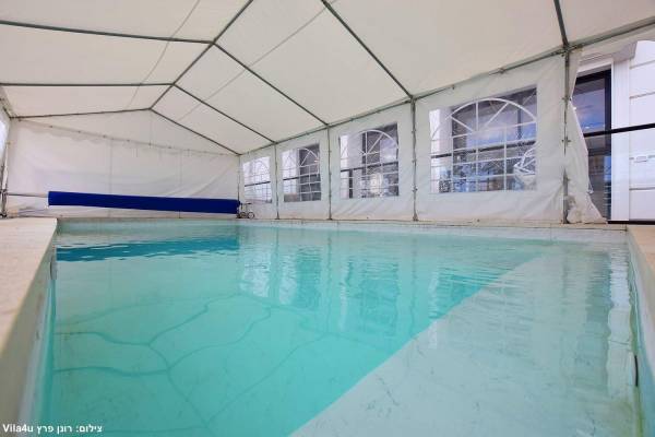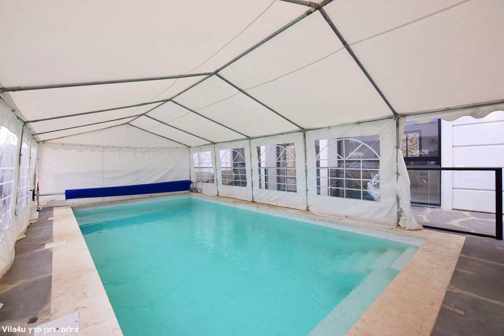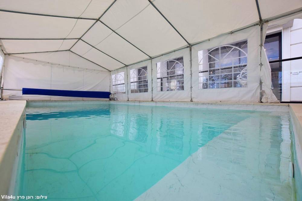 בריכת שחייה צלולה מחוממת מקורה בגודל 8 על 4 מטר