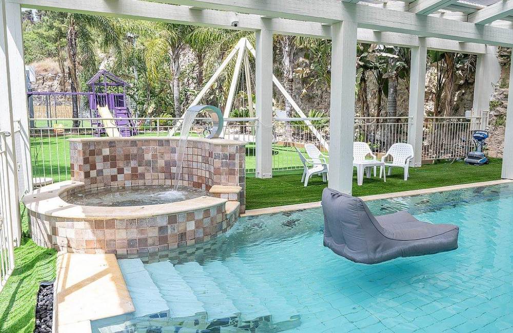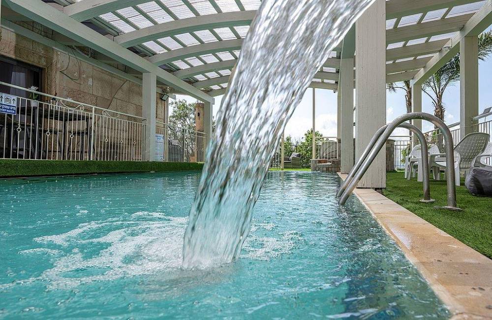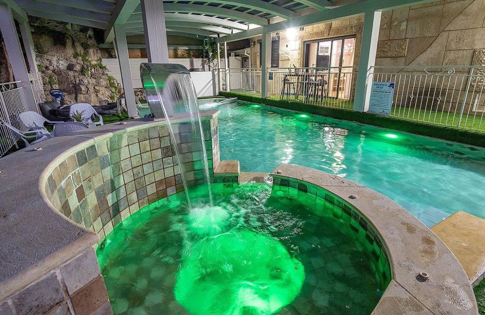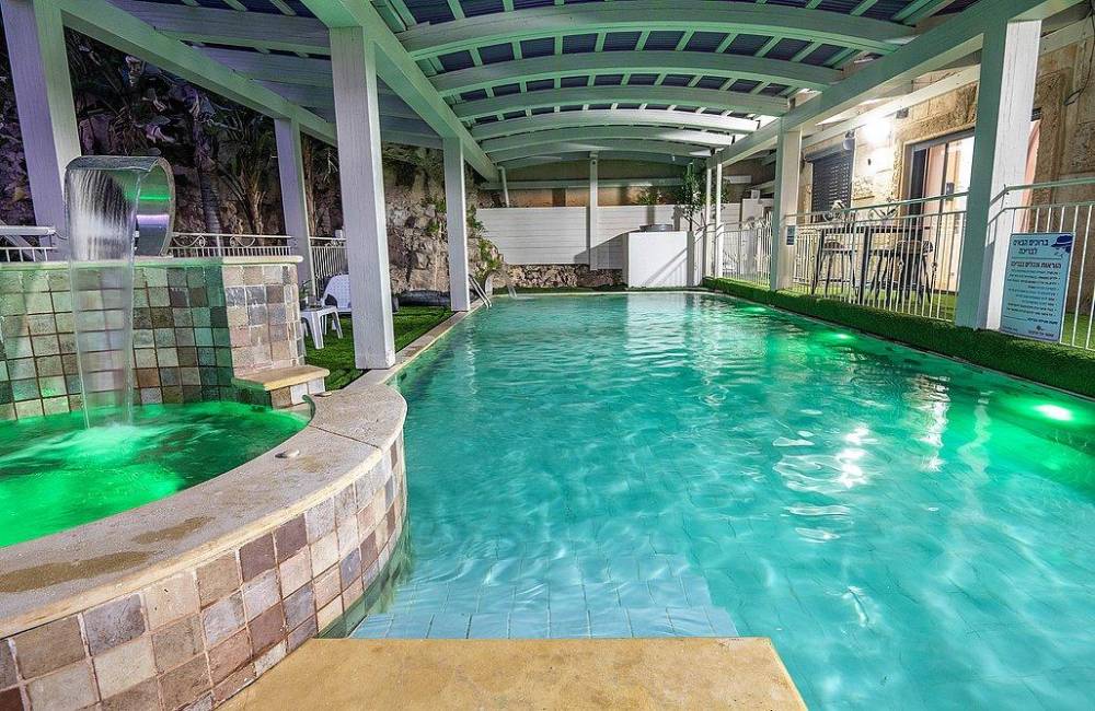 - בריכת שחייה פרטית מחוממת מקורה ומגודרת עם מפל מים