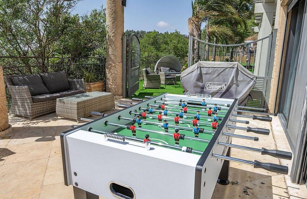 מגרש כדורגל וכדורסל, פינת משחקים לילדים ושולחנות משחק