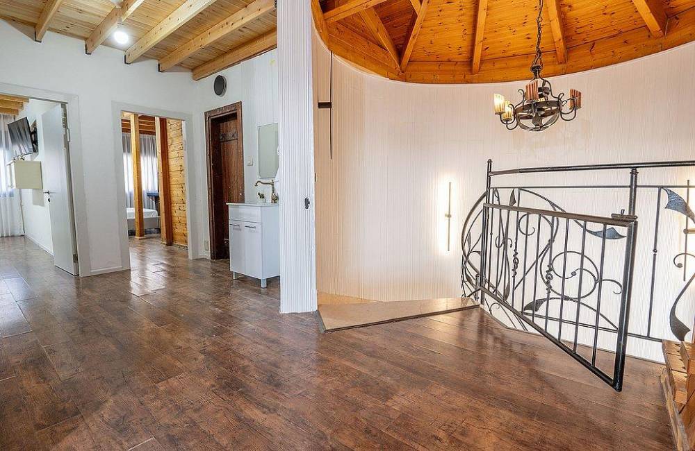 9 חדרי שינה – מתוכם סוויטות הורים, חדרים לזוגות, חדר ילדים ויחידת גלריה.