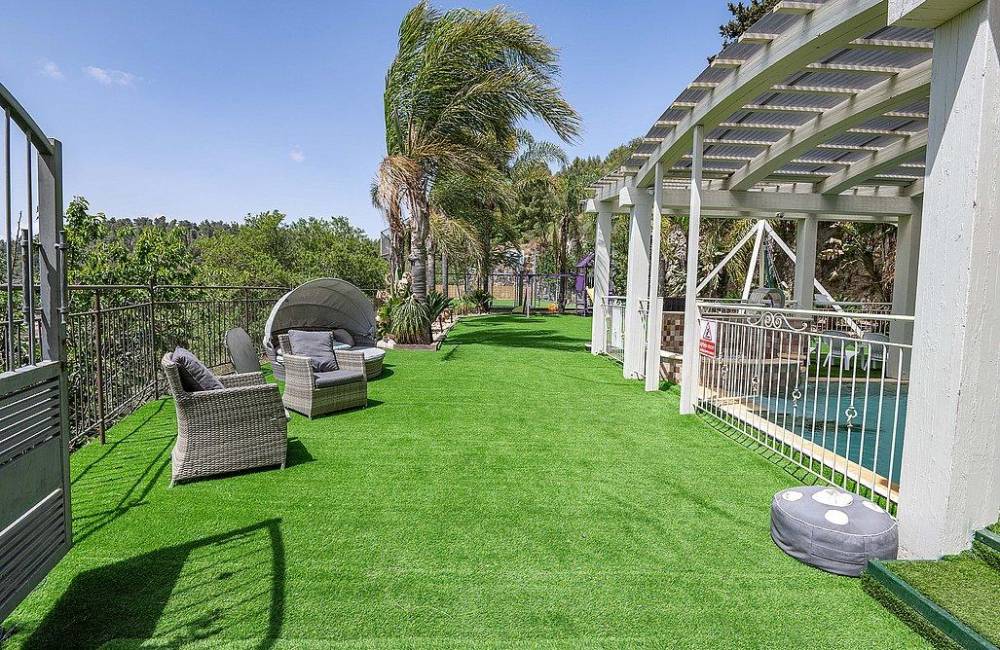 - פרגולה רחבה עם פינות ישיבה, ערסלים, סלון חוץ