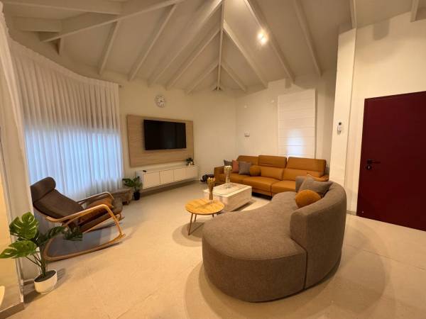 - סלון מרווח בעל עיצוב עשיר הכולל מערכת ישיבה מפנקת + מסך צפייה בחיבור כבלים yes