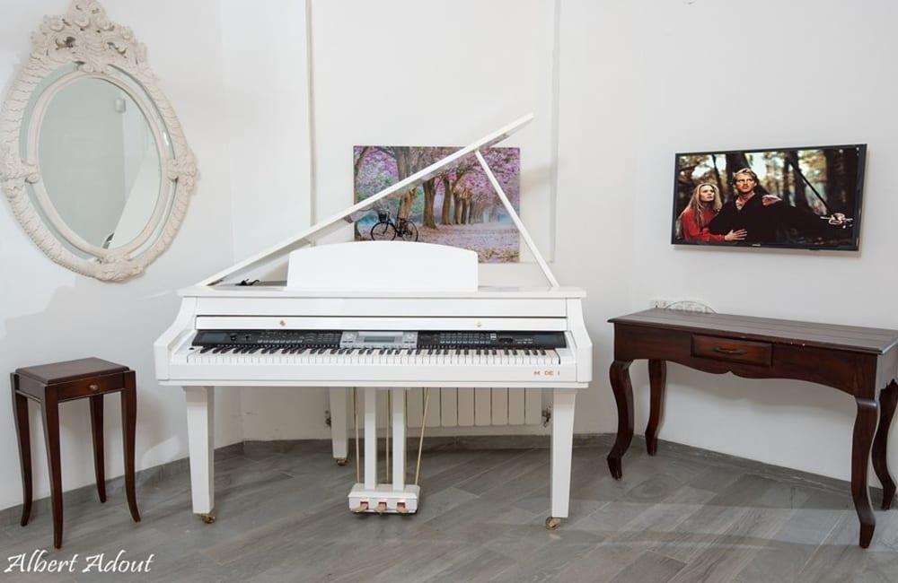 פסנתר ופינת מחשב עם גישה לאינטרנט