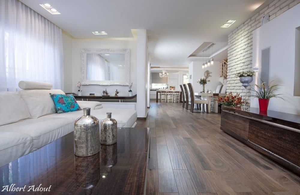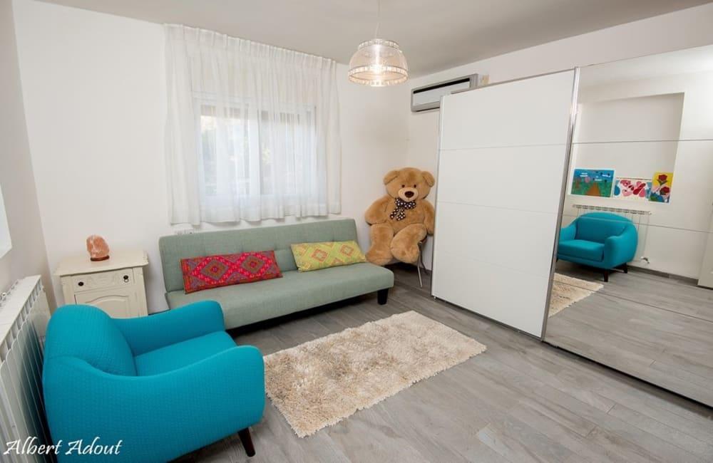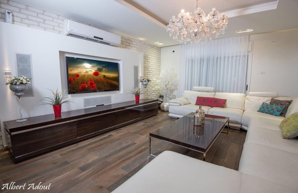 סלון מרווח עם טלוויזיה במסך שטוח 60 אינץ' ומערכת סראונד וסרטי קולנוע לבחירה