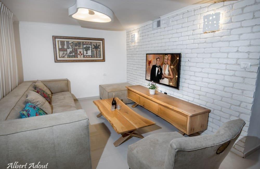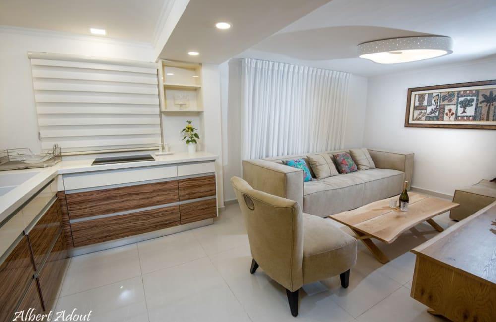 סלון + מסך צפייה + מטבח מאובזר ופינת אוכל