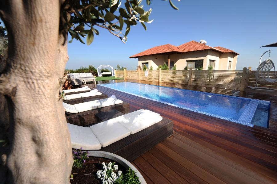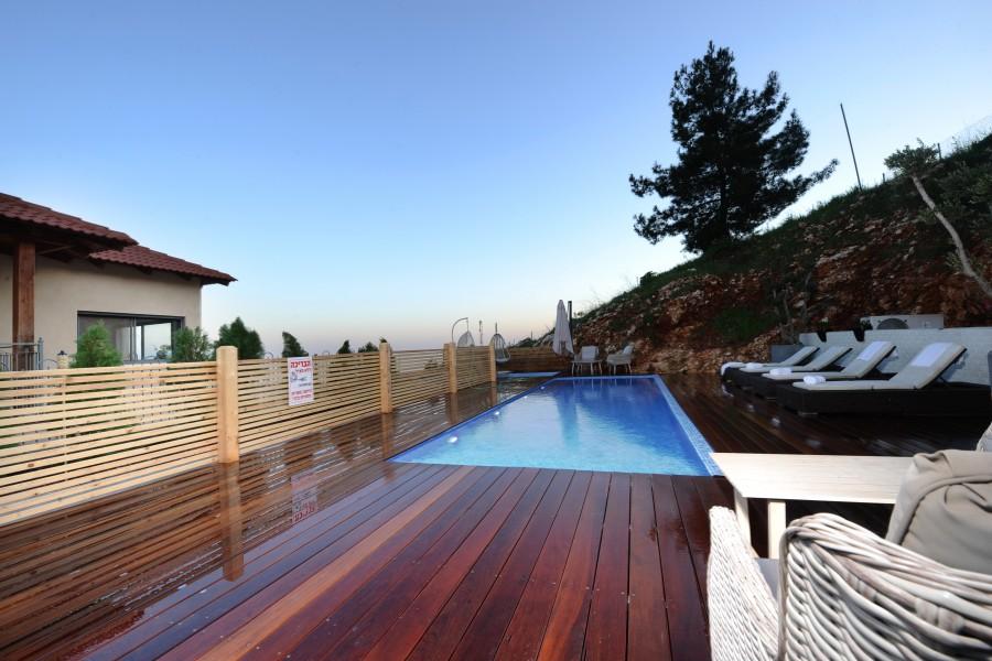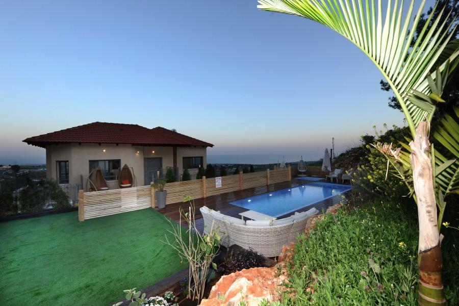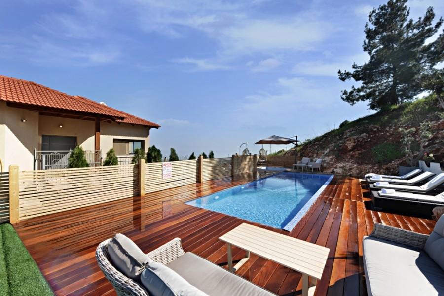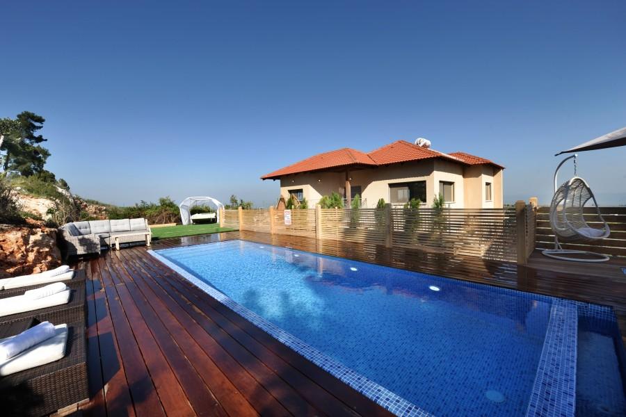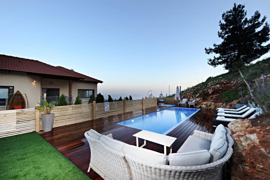 בריכת שחיה מחוממת בחורף בגודל 8/4 משקיפה אל נופי הגליל והחרמון
