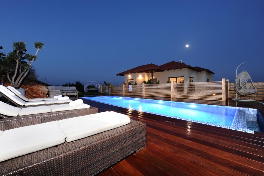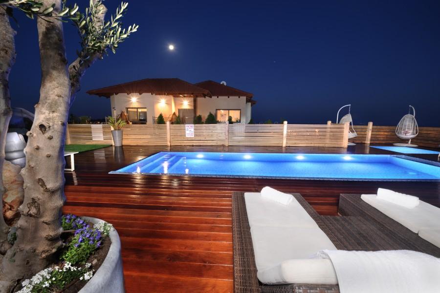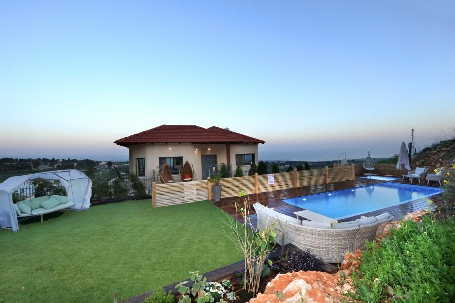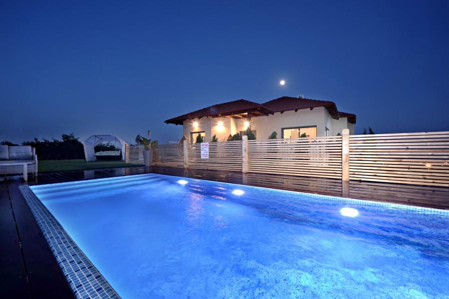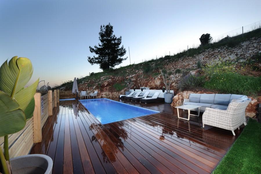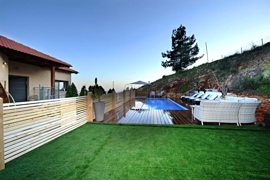 בריכת שחיה מחוממת בחורף בגודל 8/4 משקיפה אל נופי הגליל והחרמון