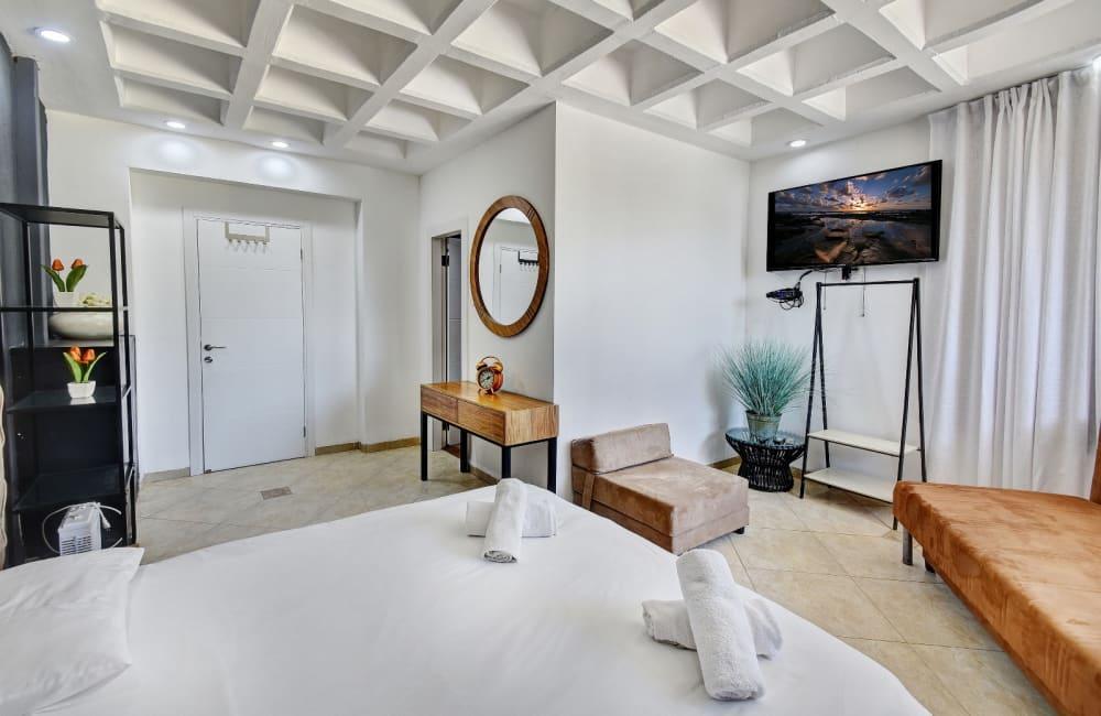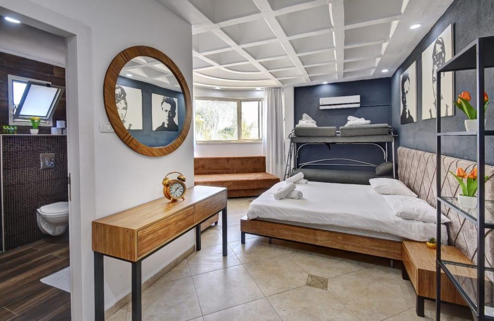 4 חדרי שינה זוגיים בכל חדר שינה: מיטה זוגית, מסך טלוויזיה, מיזוג אוויר, שידות אחסון