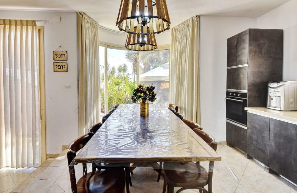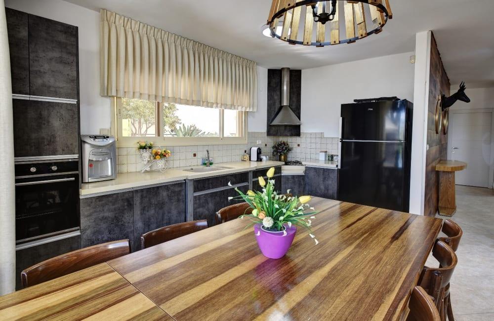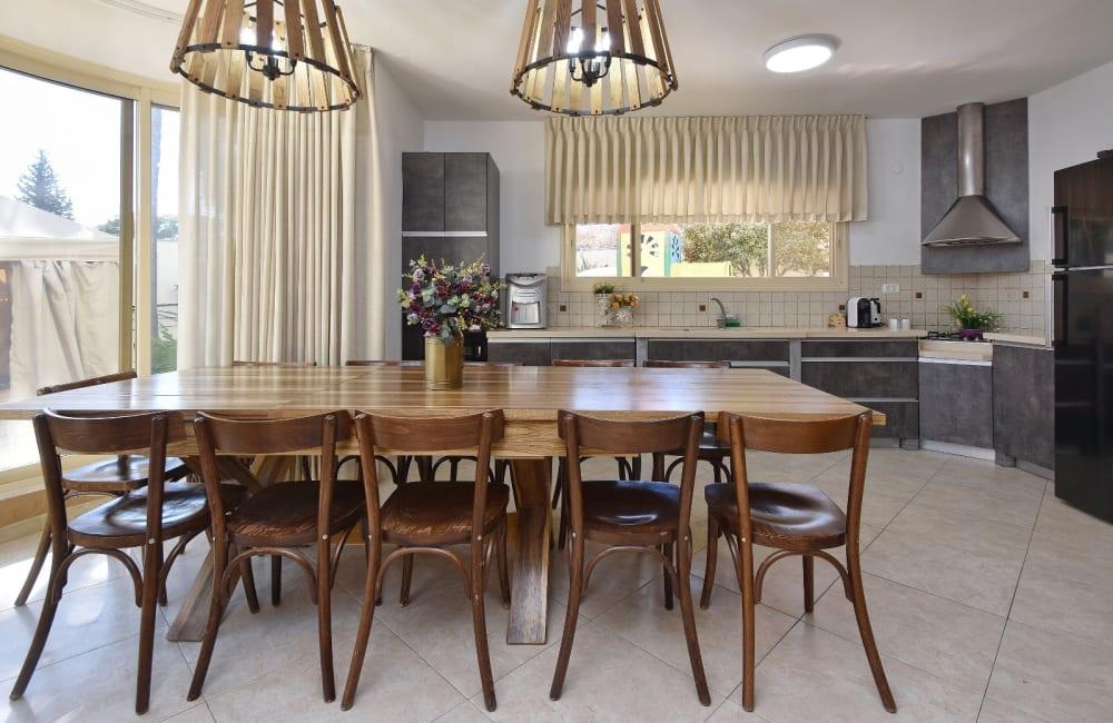 מטבח מאובזר קומפלט ובו: קומקום חשמלי, תנור אפייה, מכונת קפה, תמי 4, 2 מקררים, כיריים גז, מיקרוגל, טוסטר, סירים ומחבתות, כלי הגשה וסכו"ם.