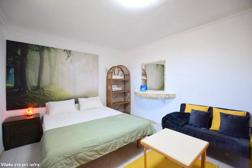 מיטה זוגית, מקלחת, שירותים, מטבחון, פינת ישיבה