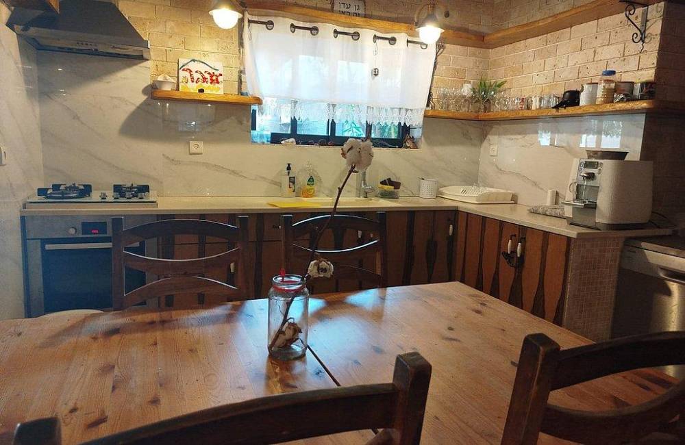 מטבח מאובזר הכולל: מקרר, כיריים גז, מדיח כלים, תמי 4 (קיימים 2), כלי אוכל והגשה