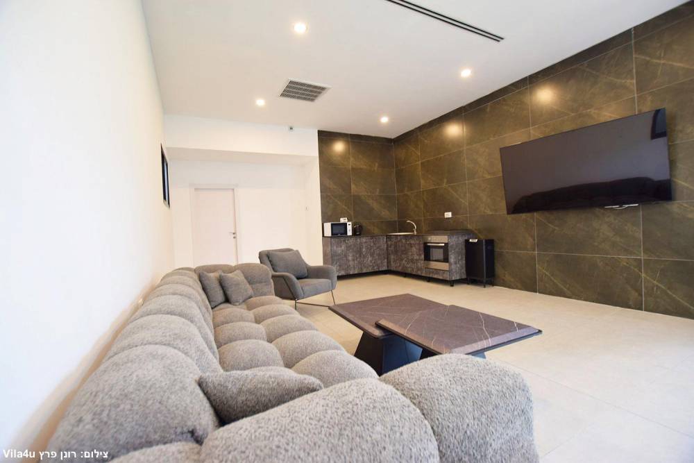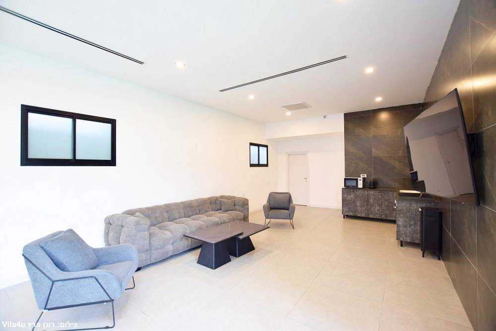 סלון רחב ידיים עם טלוויזיה גדולה + חיבור ל yes