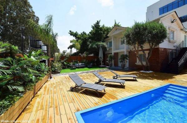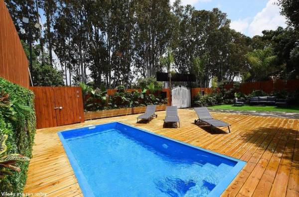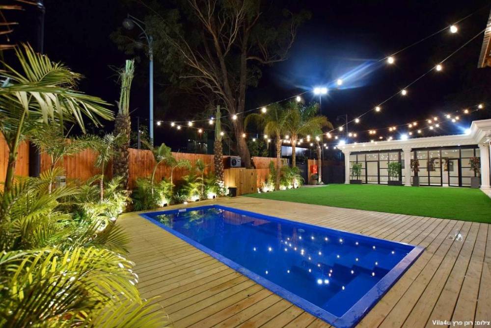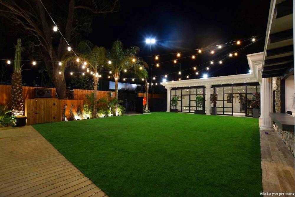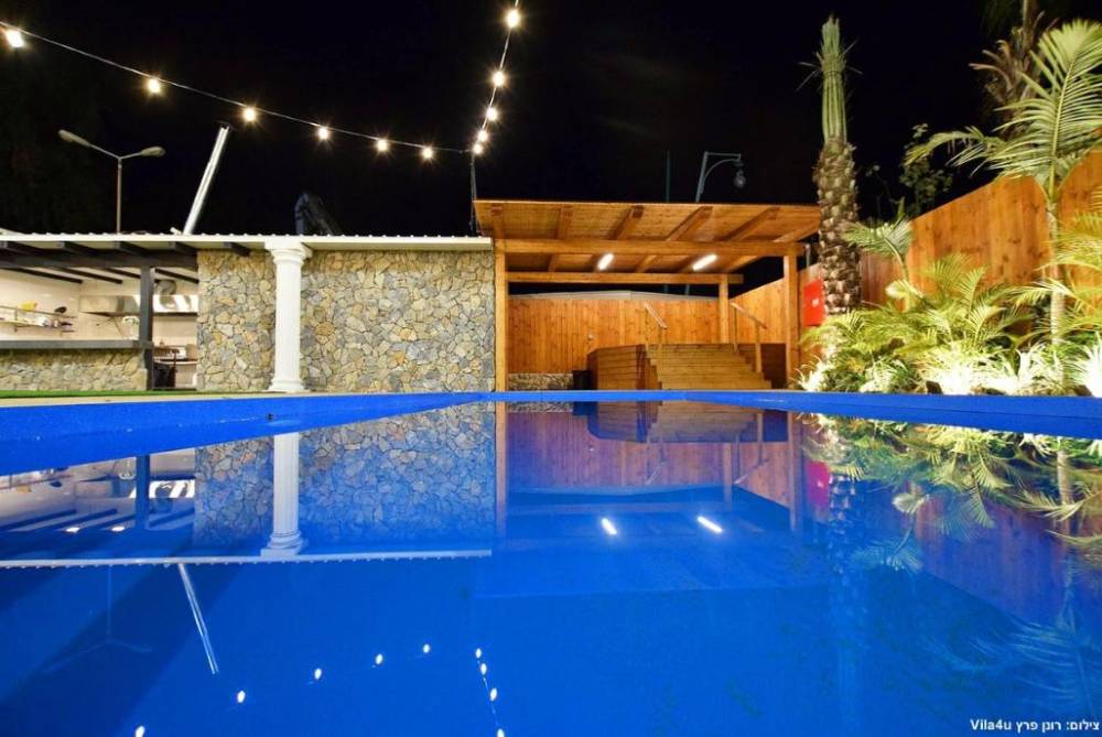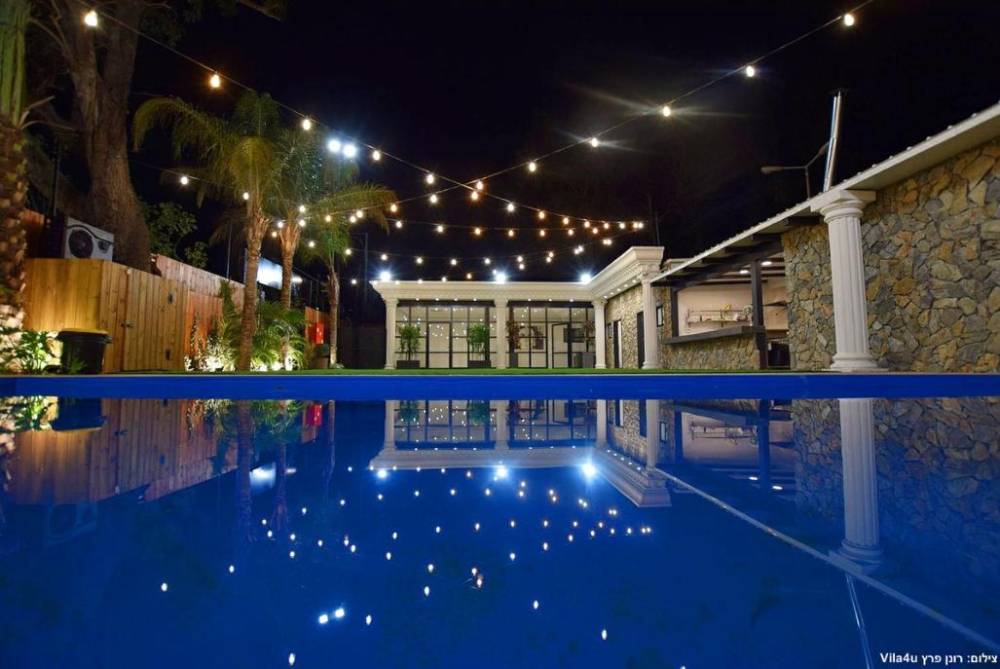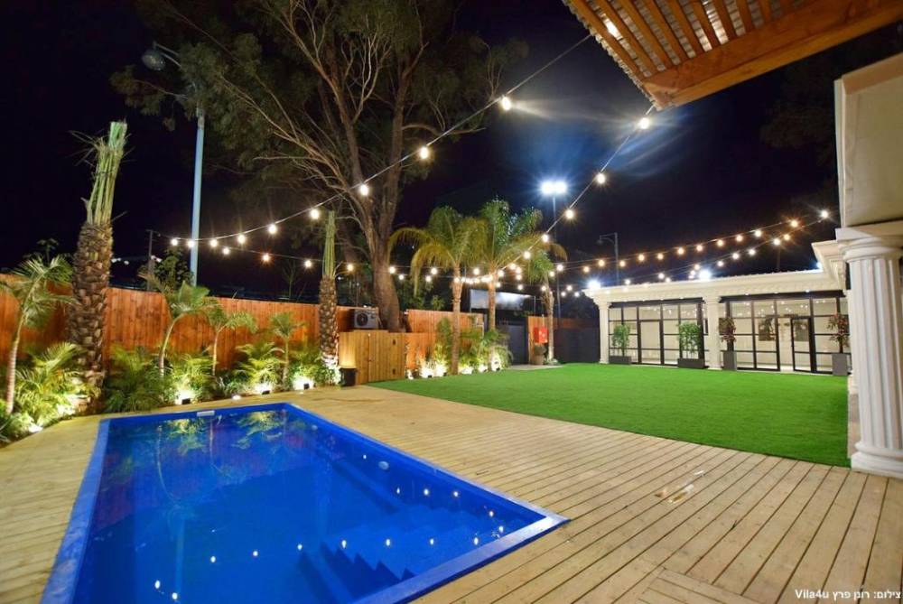 מתחם ענק בגודל 450 מ"ר, מונה חצר ענקית ומטופחת עם בריכת שחייה מחוממת ומקורה, גקוזי ספא ענק ל-8 אנשים, מערכת הגברה מקצועית ועוד.