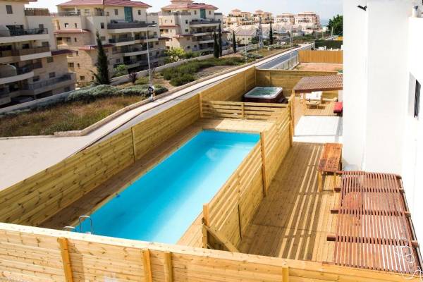בריכת שחייה גדולה מחופה בדק