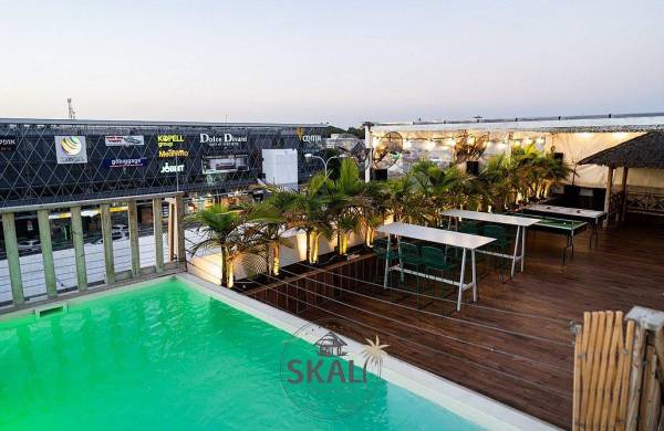 המתחם מעוצב בקפידה, עם צמחייה ירוקה, פינות ישיבה נוחות ונוף מרהיב של הסביבה, רחבה ענקית, בריכת שחייה שקופה מחוממת, מיטות שיזוף מיוחדות, פינות ישיבה על הבר, ועוד מגוון פינוקים.