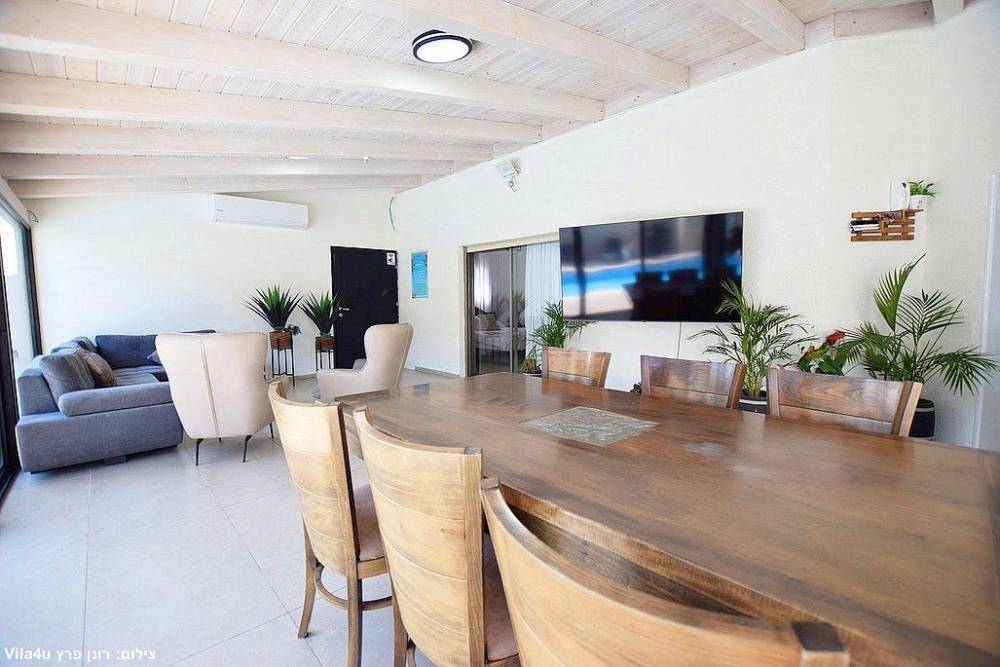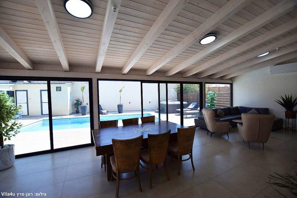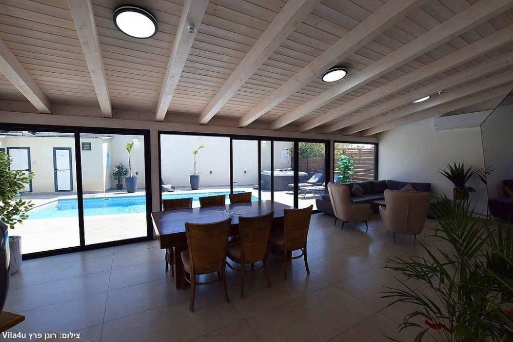 במתחם שלנו האורחים יוכלו להנות מבריכת שחייה מחוממת, שולחן פינג פונג, ג'קוזי ספא מקורה, מגוון פינות ישיבה ומיטות שיזוף בצמוד לבריכה, מתחם פנים עם עיצוב מרשים ו-5 חדרי שינה מרווחים ומאובזרים לנוחיותכם.