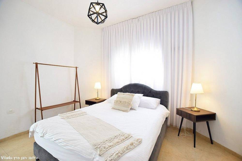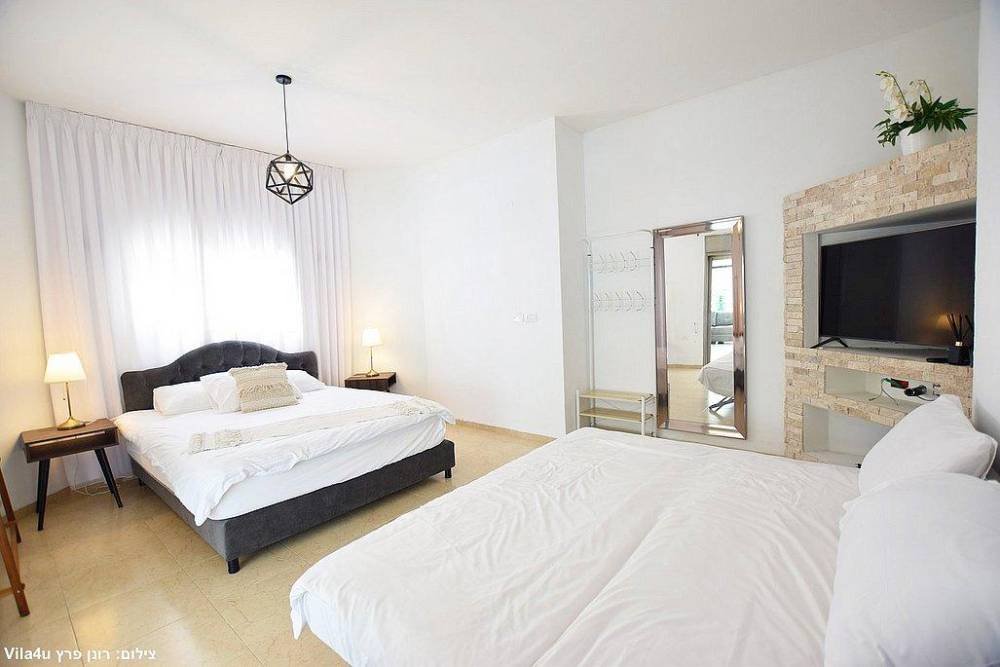 מיטה זוגית, מיזוג אוויר, טלוויזיה, מתקן לתליית בגדים ושידות אחסון. אחד מהחדרי שינה כולל גם ספה נפתחת
