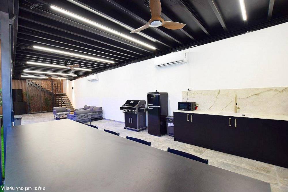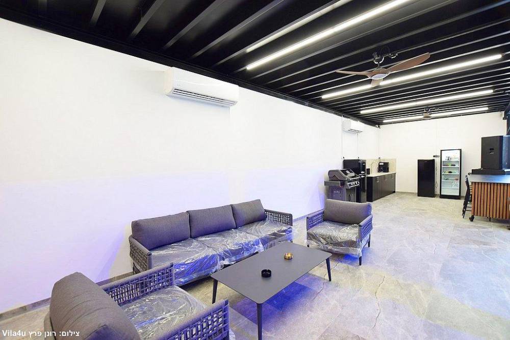 המתחם תוכנן בקפידה כדי להעניק חווית אירוח מושלמת: עם בריכה מחוממת מקורה בשילוב ג'קוזי, רחבת ריקודים ענקית, פינות ישיבה יוקרתיות, בר אלכוהול עשיר, מטבח חוץ, מערכות תאורה והגברה מתקדמות – כל מה שצריך בשביל אירוע שהוא וואו אחד גדול.
