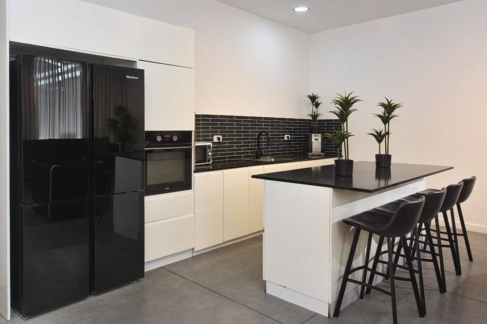 מטבח מאובזר- מקרר, כיור, תנור, פלטה חשמלית ומיחם