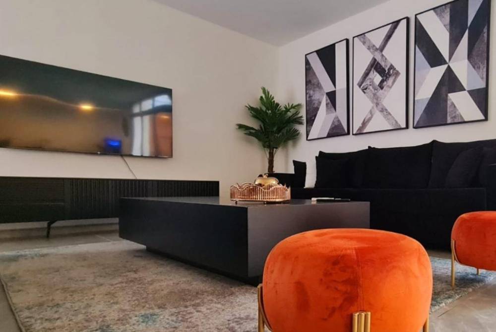 סלון מרווח עם מערכת ישיבה, מיזוג אוויר וטלוויזיה