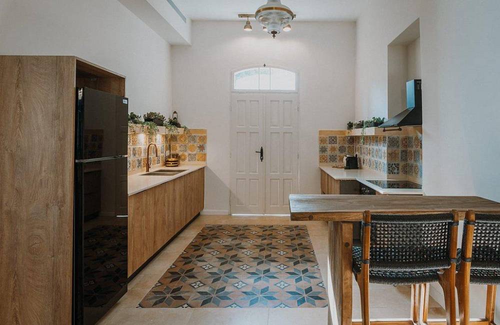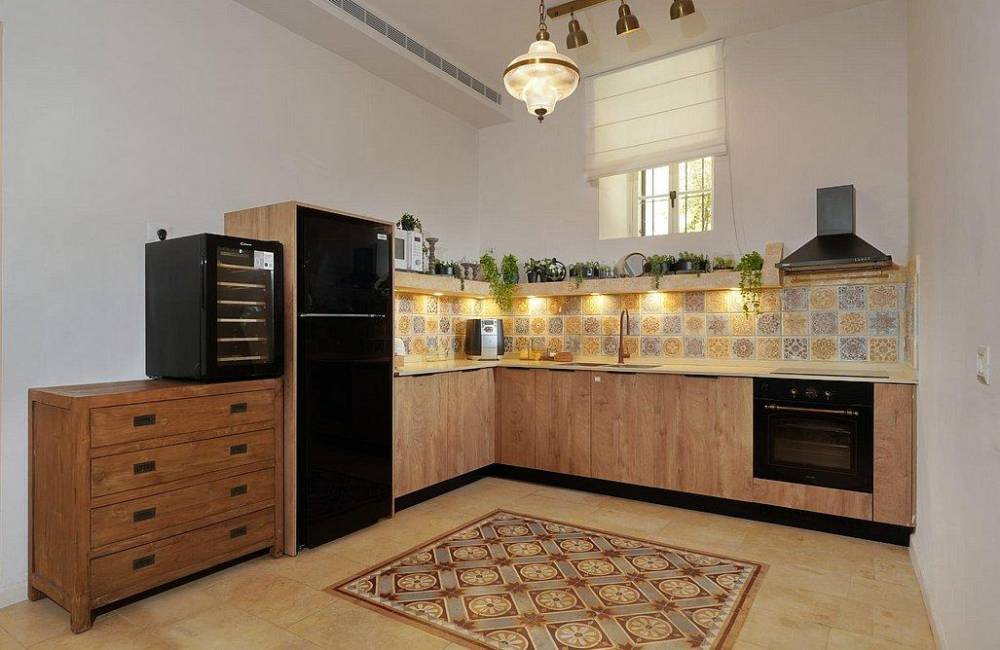 מטבח מאובזר הכולל: פינת קפה, מכונת אספרסו, פלטת שבת, קומקום חשמלי, מקרר, מקפיא, מיקרוגל, תנור אפייה, סירים, מחבתות, כלי הגשה, כיריים חשמליות ומדיח.