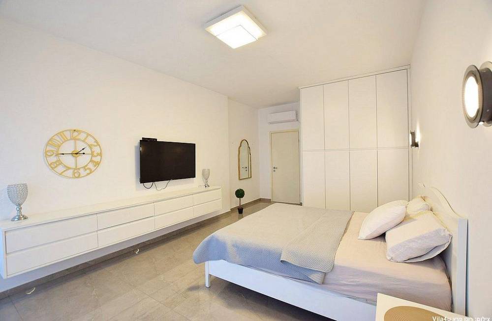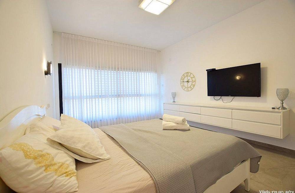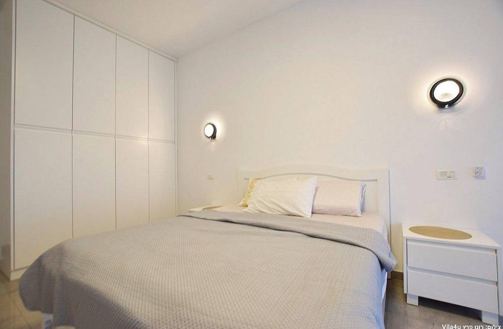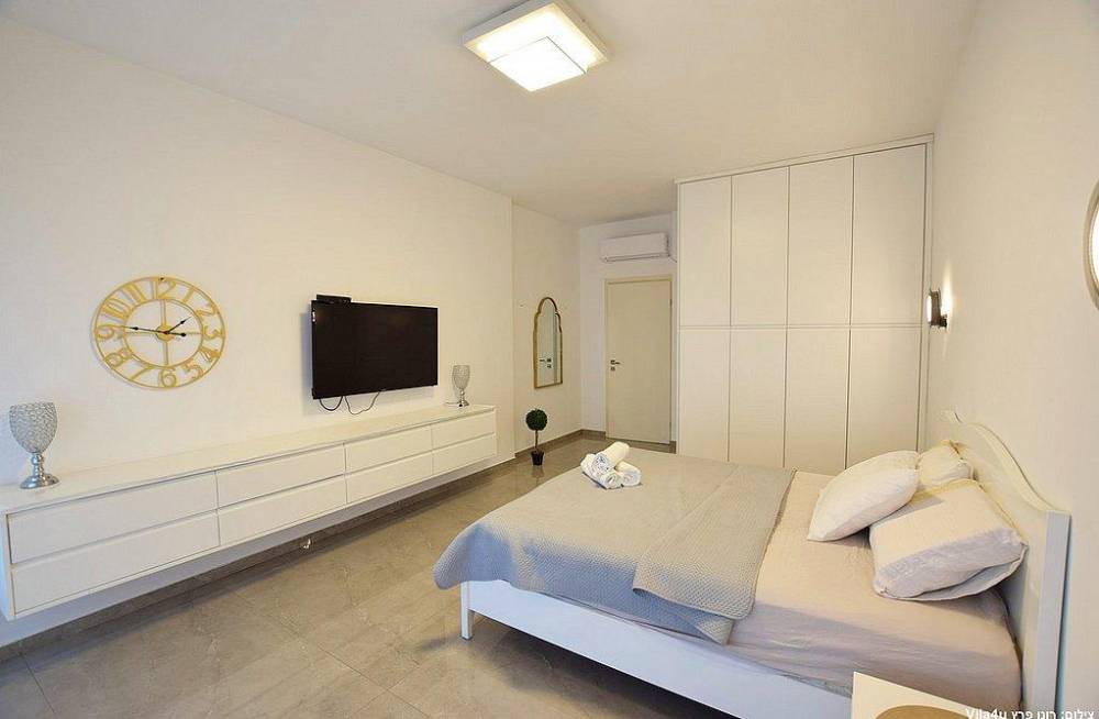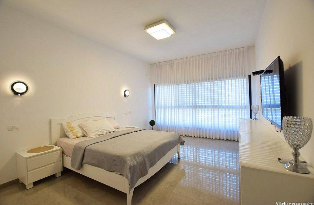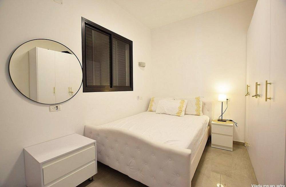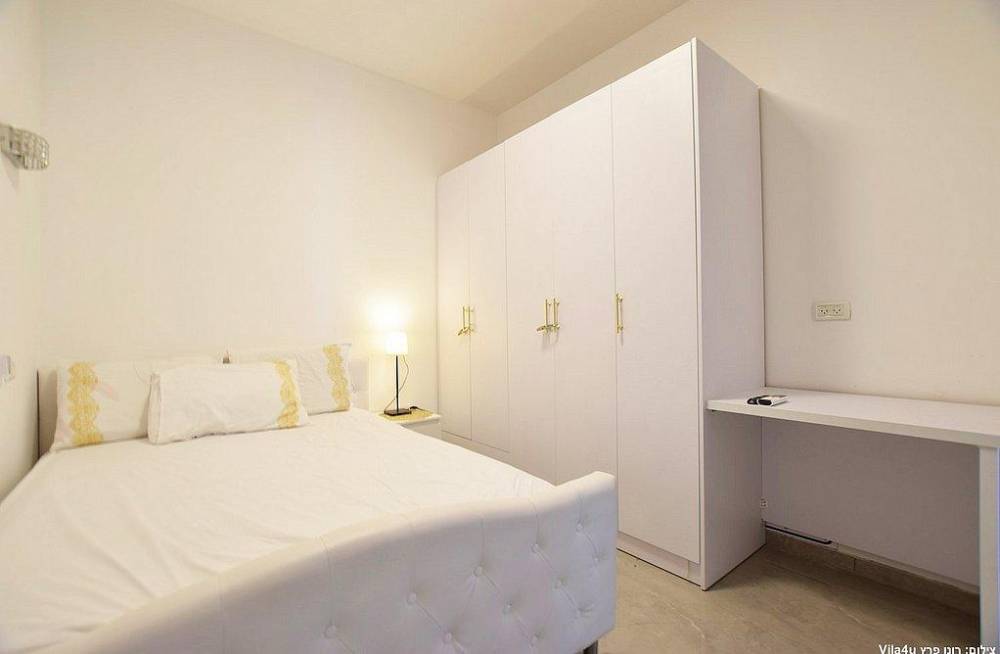 אבזור החדרים בכל המתחם: מיטה זוגית מוצעת, מזגן, שידה, מסך צפייה