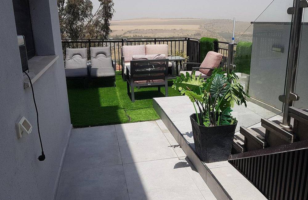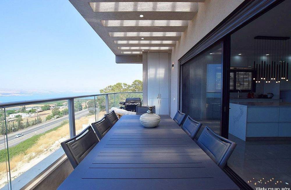 מרפסת לנוף מדהים. המרפסת הכוללת פינת אוכל ומטבח חיצוני
