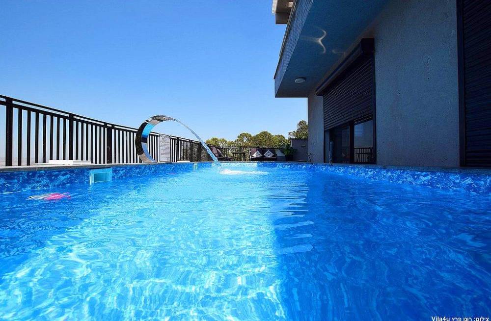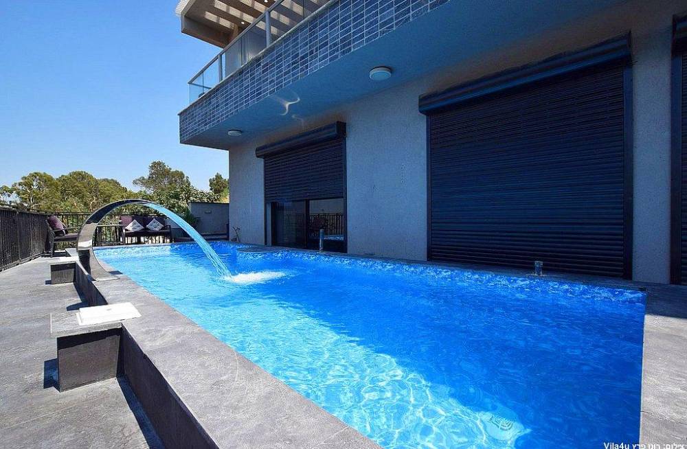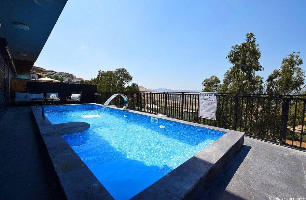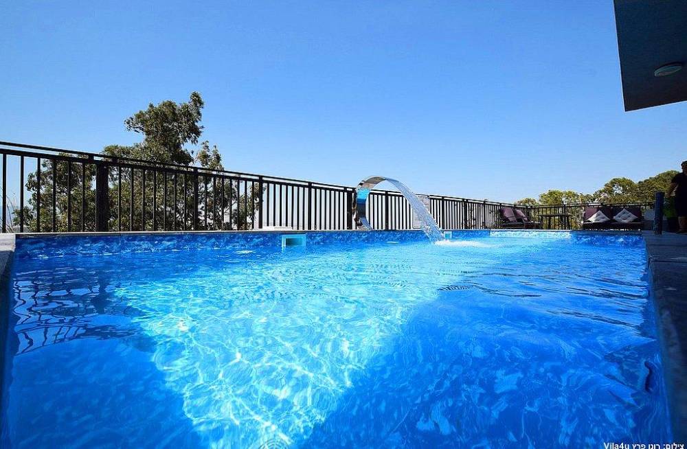 יציאה לבריכת שחייה עם מפל מים בגודל 7.5X3, הבריכה מחוממת בחודשי החורף