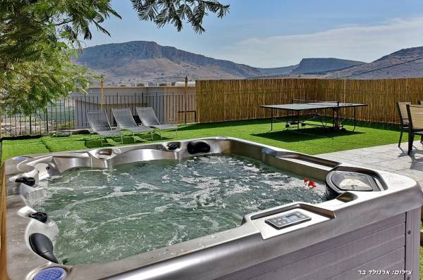 מתחם חיצוני קסום עם שולחן פינג פונג, ג'קוזי ספא ונוף עוצר נשימה