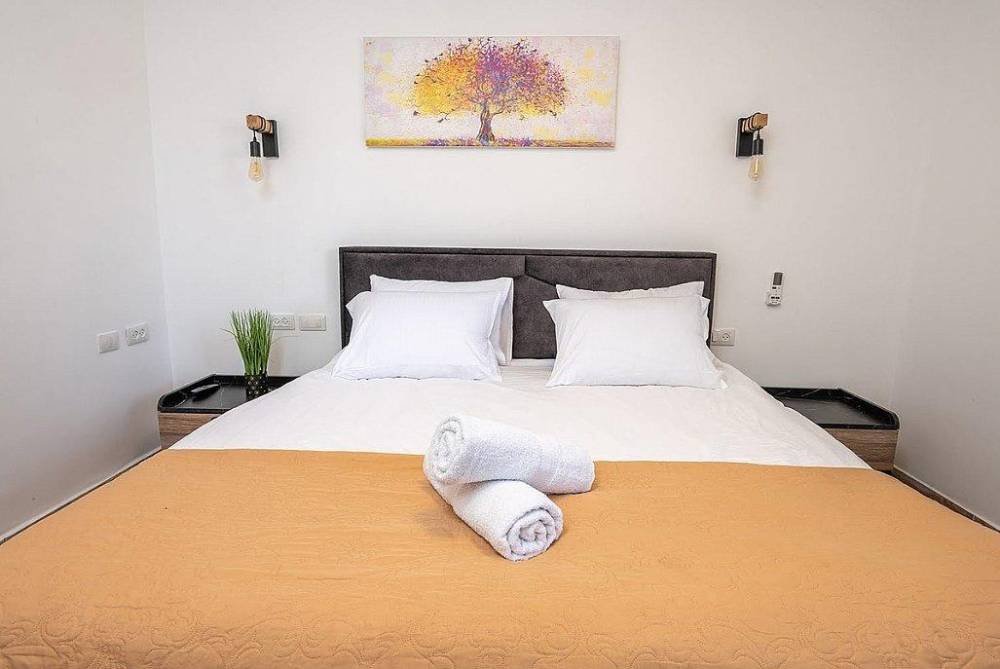3 חדרי שינה: כל חדר עם מיטה זוגית, טלוויזיה, מזגן, שידות לאחסון