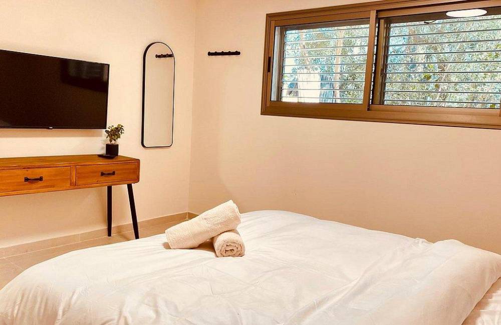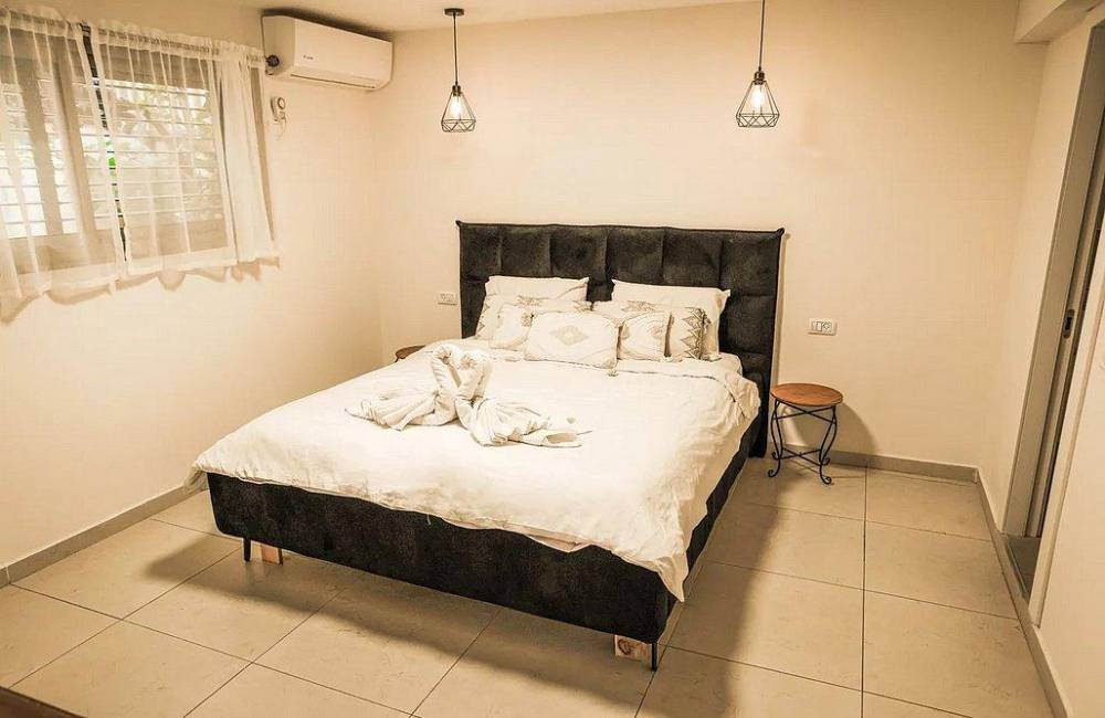 אבזור החדרים: מיטה זוגית, שידה, מיזוג אוויר