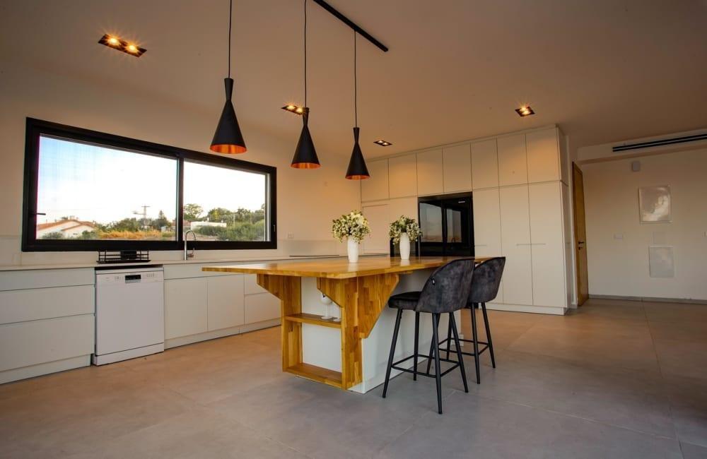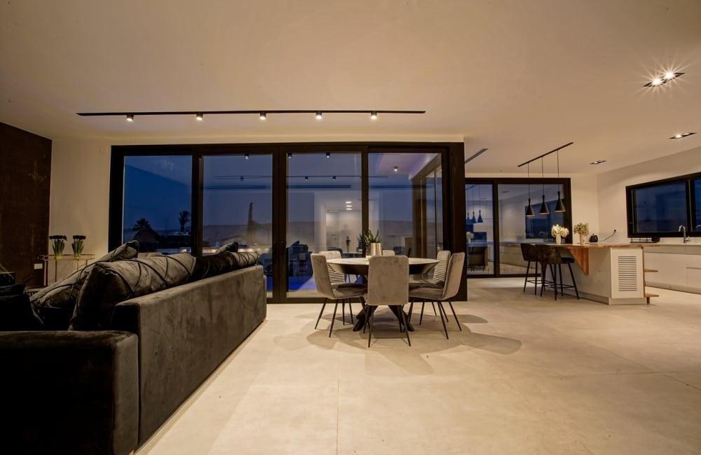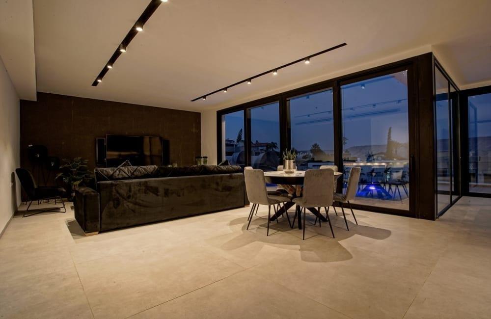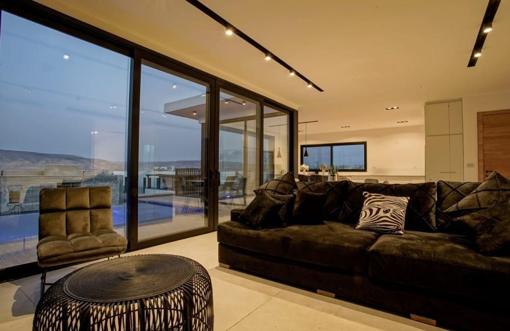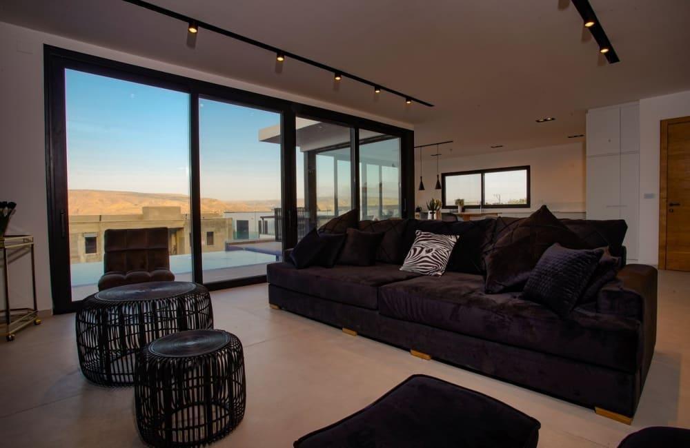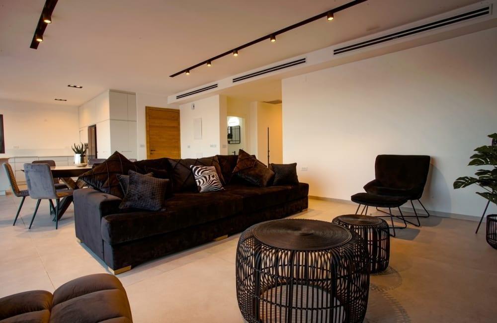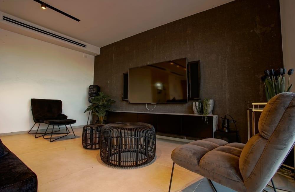 סלון גדול ומרווח עם מסך שטוח בגודל 75 אינץ וחיבור ל HOT ונטפליקס.