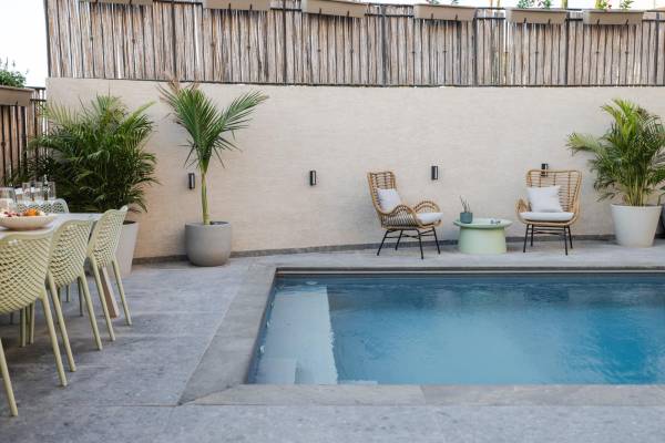 פינה בסגרה מיטות שיזוף ובריכה