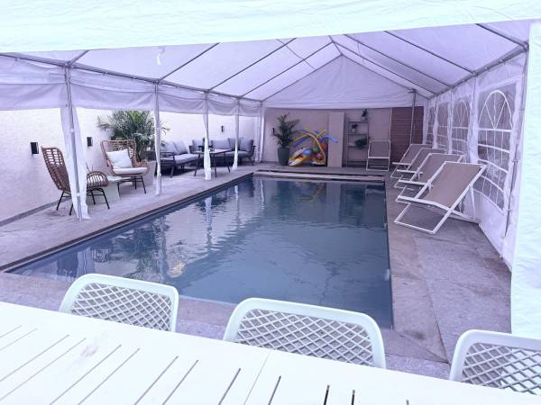 בריכת שחייה מחוממת, מקורה ומגודרת