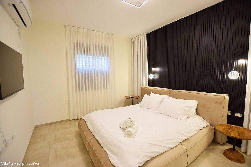 - מיטה זוגית, מיזוג אוויר, שידות, מסך טלוויזיה