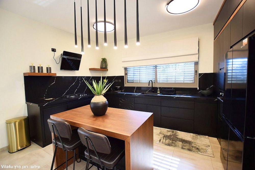 - מטבח מאובזר הכולל: כיריים גז, מקרר, תנור אפייה, מיקרוגל, מתקן שתייה וכלי הגשה