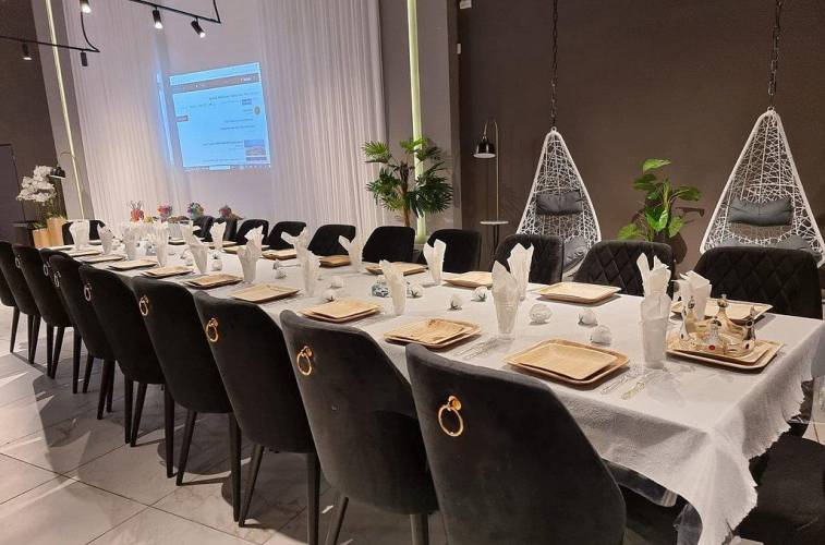שולחן ענקי בגודל 7.5 מטר עם כסאות