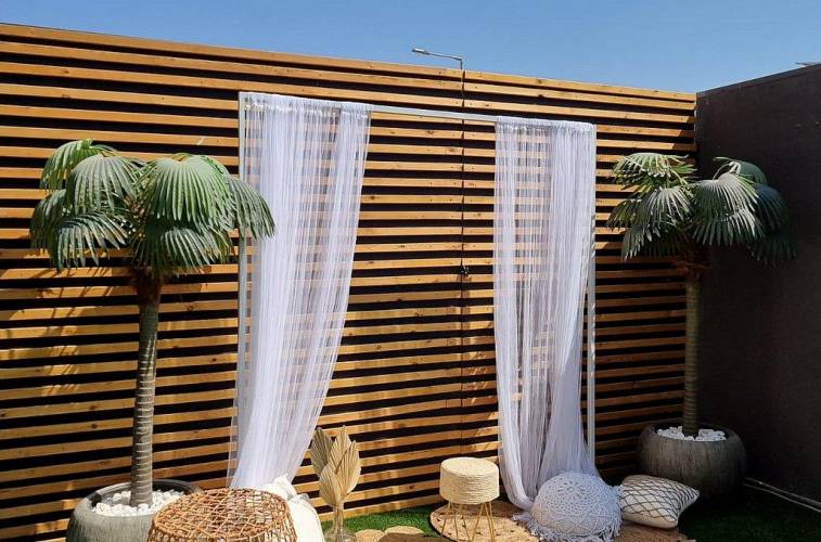 המתחם כולל חצר גדולה עם בריכה, ג'קוזי ספא ענקי, מערכות הגברה, פינת מנגל מאובזרת עם משטח עבודה ומקפיא, מדשאות ומגוון פינות ישיבה מעוצבות. במתחם הפנימי תוכלו להנות ממערכות הגברה ברמה גבוהה, שולחן סנוקר, מערכות ישיבה נוחות, מקרן ומסך בגודל 85 אינץ'.