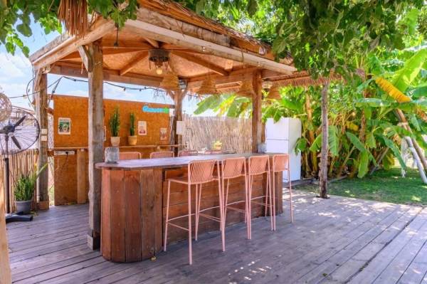 בר חיצוני הכולל: מקרר, מקפיא כיור ותנור