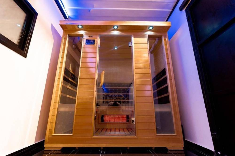- חדר שינה 1: מיטה זוגית, סאונה יבשה, מזגן, ספה