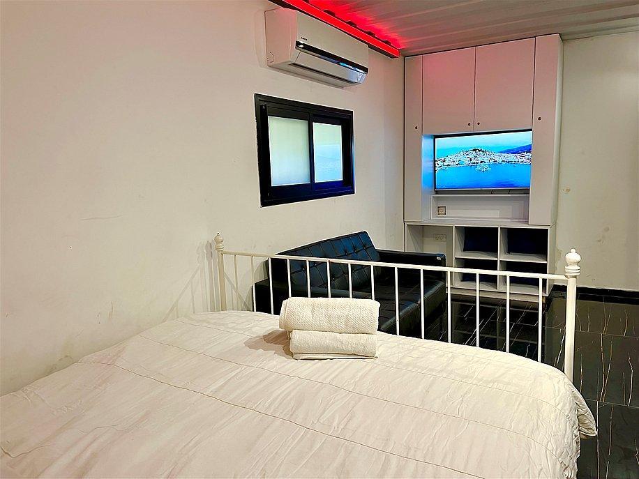 - חדר שינה 2: מיטה זוגית, ספה, מזגן, מסך טלוויזיה סמארט TV