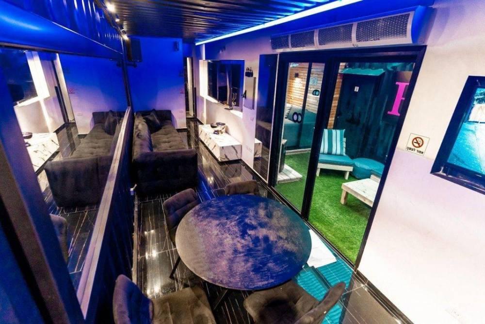 המתחם הפנימי כולל 2 חדרי שינה מפנקים, סלון רחב ידיים עם מערכת ישיבה נוחה ומסך טלוויזיה חכם, ומטבחון מאובזר לחלוטין עם כל מה שצריך לנוחות מירבית. מערכת שמע מהמתקדמות ביותר תחמם את האווירה ותהפוך את האירוח שלכם למושלם.