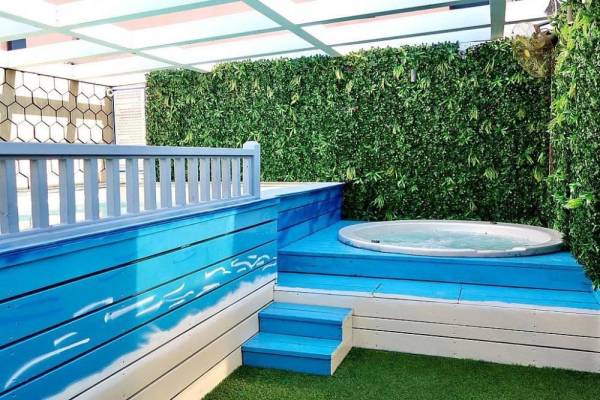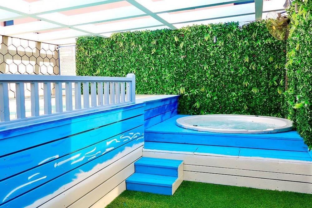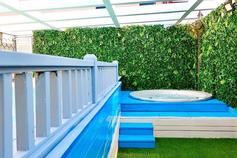 המתחם החיצוני במתחם אבו דאבי בוטיק מושלם לכל סוגי החגיגות . תיהנו מבריכת זרמים גדולה (מחוממת ומקורה בעונת החורף), ג'קוזי ספא לוהט, סאונה ועוד מגוון מתקנים שיפתחו לכם את האפשרות להירגע ולהתפנק.