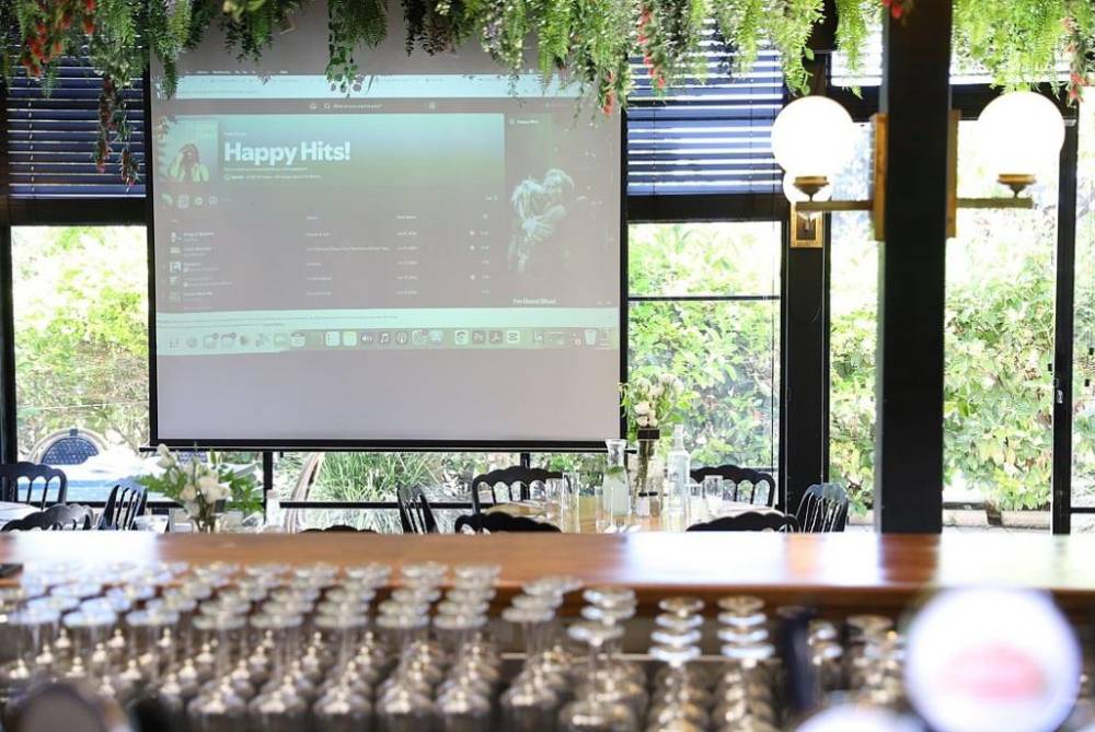 - מקרן ענק להקרנת מצגות, סרטונים או ברכות
